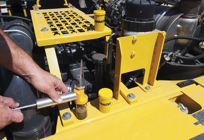 يُجرى فحص دوري لصحة الآلية على المدى الطويل، حيث يُجرى اختبار Komatsu لتحليل الزيت والتآكل (KOWA) وفقًا لتوجيهات Komatsu الصارمة لمنع توقف الآلية عن العمل وكذلك من الإصلاحات غير المخطط لها وإطالة عمر المكونات. ومن ثم يتم تقديم نتائج التحليل بشكل سريع ويمكن الوصول إليها على موقعنا الإلكتروني بلغات متعددة.