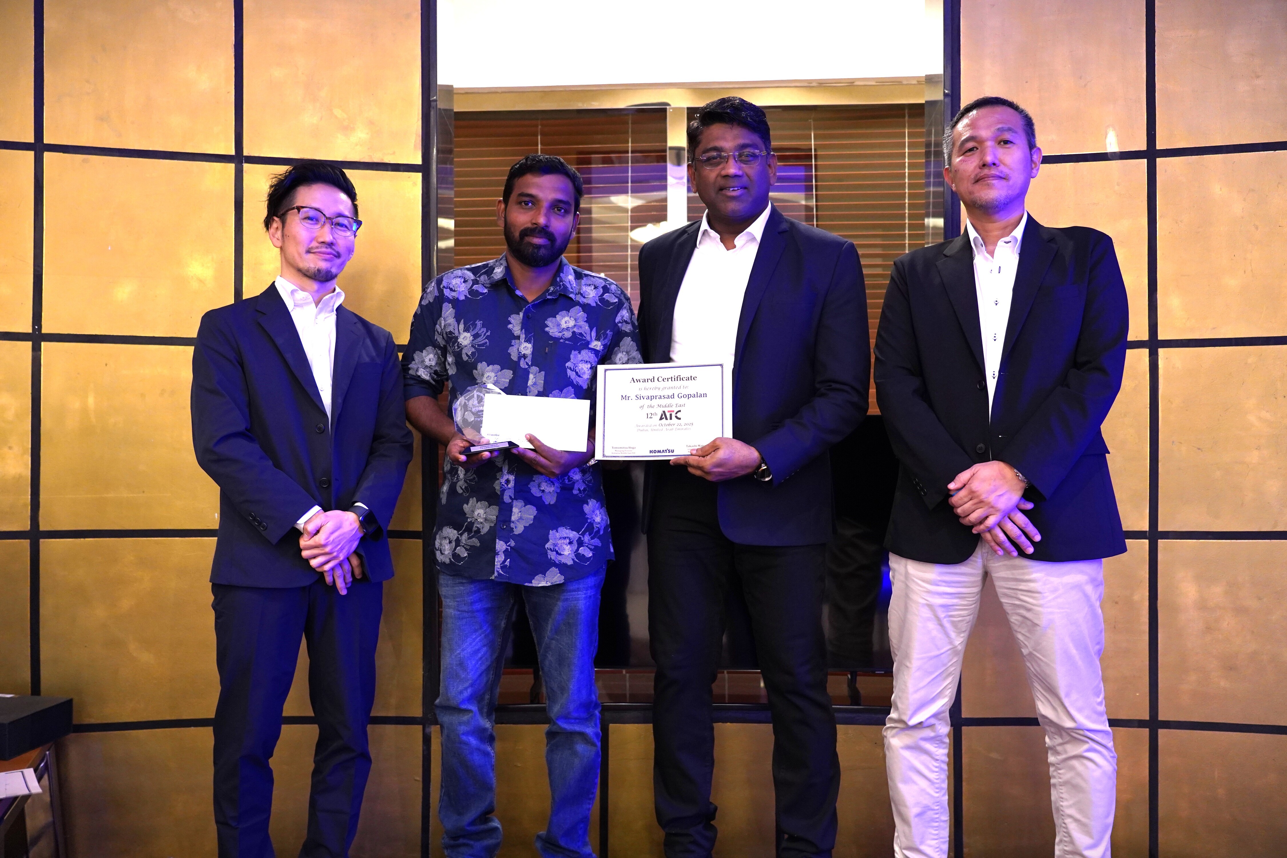 In addition to the top awards, special recognition was also presented for Safety Excellence, reinforcing Komatsu’s commitment to safety and operational excellence:
